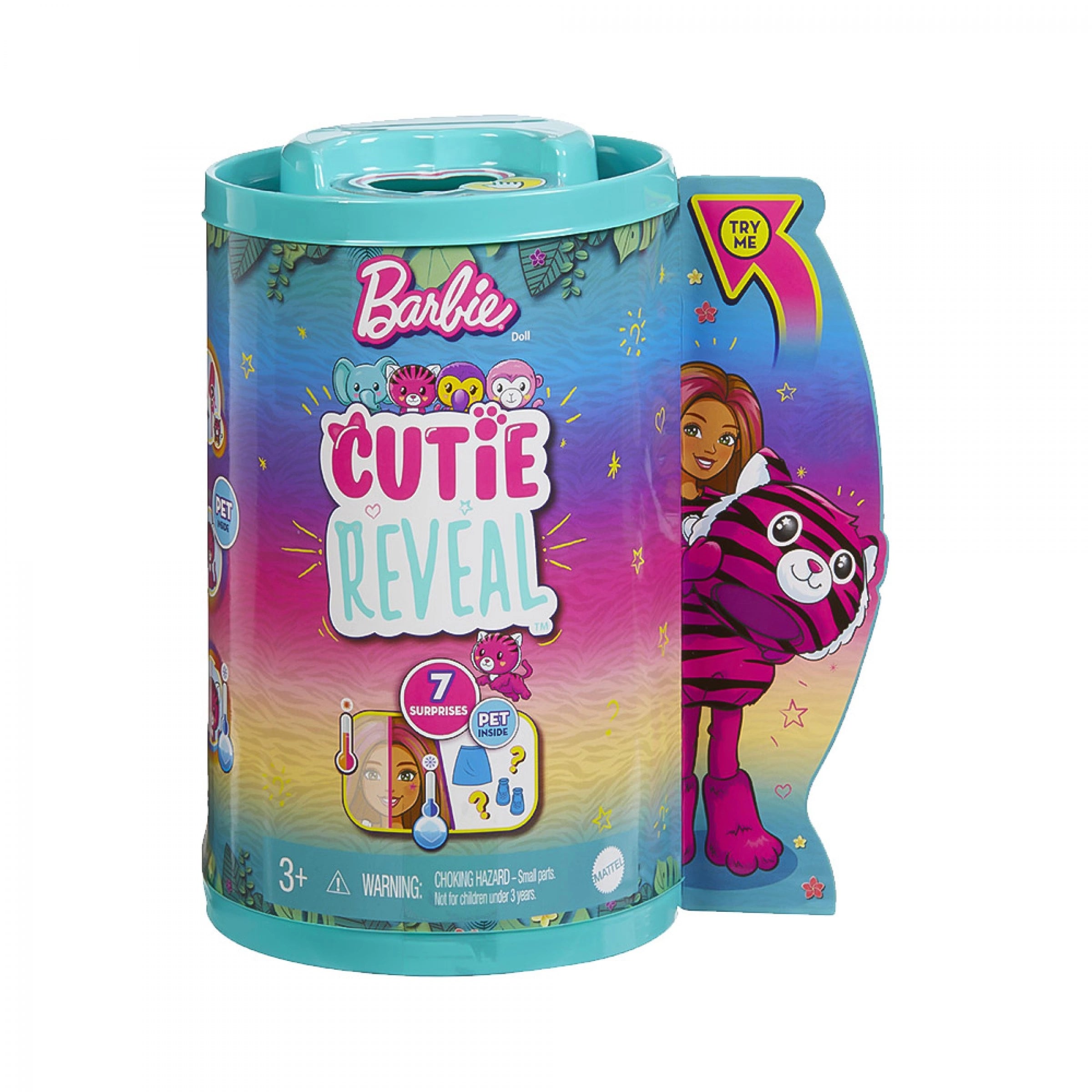Οι κούκλες Barbie® Cutie Reveal προσφέρουν την πιο χαριτωμένη εμπειρία αποκάλυψης με επτά εκπλήξεις! Ανακαλύψτε ένα αξιαγάπητο τιγράκι και στη συνέχεια, αφαιρέστε τη στολή για να αποκαλύψετε μια ευλύγιστη μικρή κούκλα Chelsea. Ποια κούκλα θα αποκαλύψετε; Κάθε μικρή κούκλα έχει σχέδια στο πρόσωπο που κάνουν την εμφάνισή της ακόμα πιο χαριτωμένη. Αποκαλύψτε περισσότερες εκπλήξεις, όπως μια φούστα και ένα μίνι ζωάκι που ταιριάζει με τη στολή της κούκλας! Το επάνω μέρος της στολής αναποδογυρίζει και γίνεται over-sized μπλούζα, ενώ και το κεφάλι μετατρέπεται σε κρεβάτι για ζωάκι. Το παγωμένο νερό προσθέτει ακόμα περισσότερα παιχνίδια με την αλλαγή χρώματος της κούκλας και του μικρού ζώου. Το ζεστό νερό επαναφέρει τις εμφανίσεις τους για διασκέδαση ξανά και ξανά!