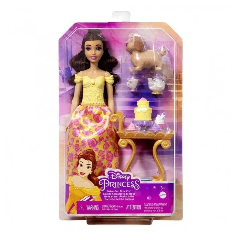Τα παιδιά είναι καλεσμένα στο κάστρο για να πιουν τσάι με την Πεντάμορφη και τους φίλους της! Αυτή η ευλύγιστη κούκλα Πεντάμορφη έχει πριγκιπική εμφάνιση και συνοδεύεται από ένα καροτσάκι για να προσφέρει τσάι και γλυκά στους φίλους της. Τα παιδιά μπορούν να αναπαραστήσουν τις αγαπημένες τους στιγμές από την ταινία ή να φανταστούν τις δικές τους ιστορίες! Η κούκλα δεν μπορεί να σταθεί όρθια από μόνη της. Τα χρώματα και τα σχέδια μπορεί να διαφέρουν.